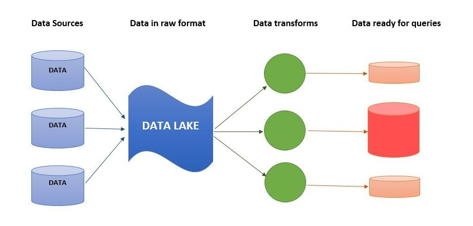 A data lake is a central location that stores a huge amount of disparate and unstructured data in its raw format until it is later required for processing. The raw data, captured from various sources like mobile apps, IoT devices, social media, business applications, is structured and its data format is derived at the time of analysis. A data lake is usually used to gather insight for data science research and testing, which is why it is also known as 'for machines' data storage type.
